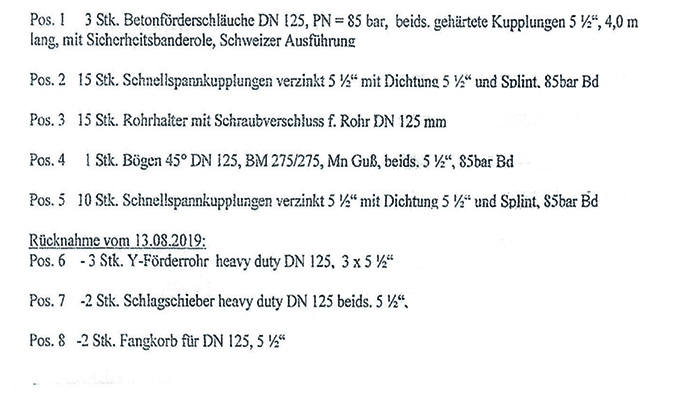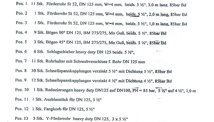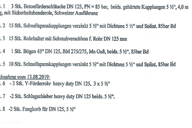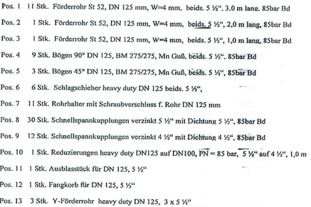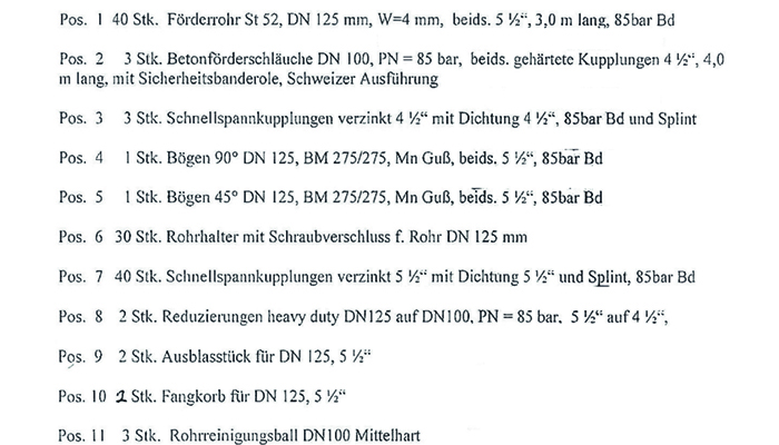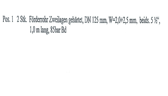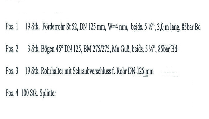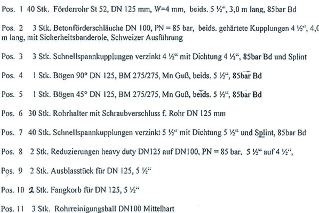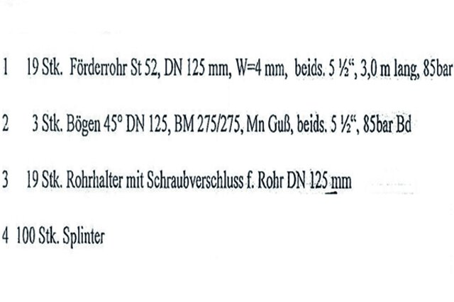 - Betonierleitungen (St52, DN125, w=4mm) einer stationären Betonförderanlage (ohne Pumpe) samt Formstücken