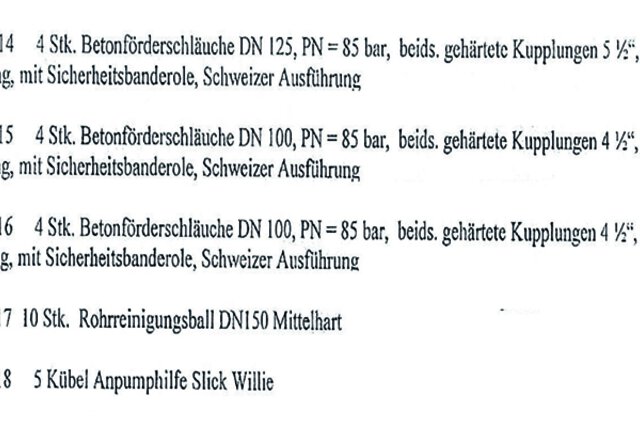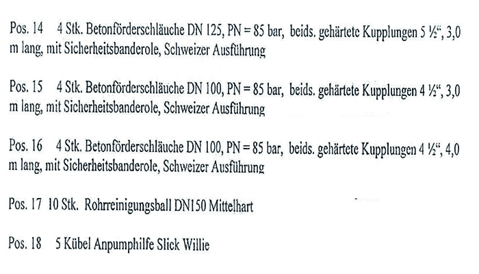 Bisher über diese Rohre geführte Betonkubatur: ca. 3.500 m3, der Hersteller gibt die Lebensdauer mit ca. 12.000 m3 an.