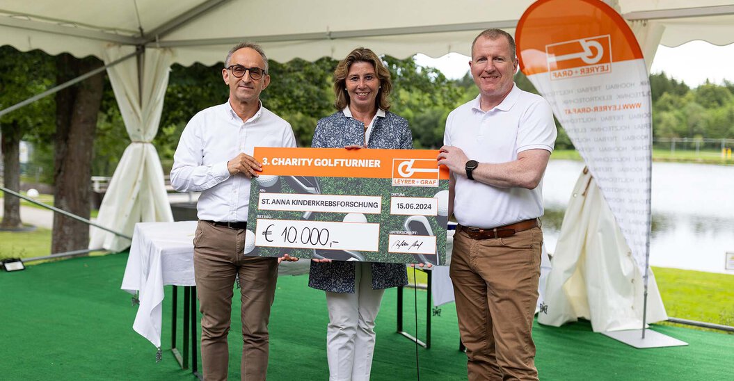 Was gibt es Schöneres als eine sportliche Aktivität in der Natur mit sozialem Engagement zu verbinden? Wenn Leyrer + Graf zum Charity-Golfturnier ruft, kommen stets zahlreiche Teilnehmer, um den Golfschläger für einen guten Zweck zu schwingen. Bei sonnigem Wetter und toller Stimmung wurde ein beeindruckender Spendenbetrag von € 10.000,- zugunsten der St. Anna Kinderkrebsforschung erspielt.