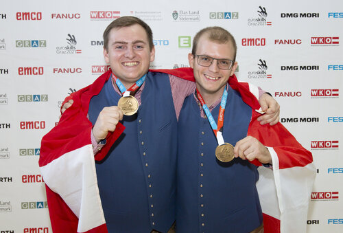 Daniel Mühlbacher und Georg Engelbrecht überglücklich und stolz: „Wir können es noch gar nicht so recht glauben, dass wir wirklich gewonnen haben. Es war eine unglaublich intensive Zeit – sowohl die Vorbereitung als auch der Bewerb selbst und wir sind so froh, dass sich die Anstrengungen und der hohe Einsatz gelohnt haben. Es war so eine außergewöhnliche Erfahrung, die wir unser ganzes Leben lang nicht vergessen werden. Europameister in der Sparte „Betonbau“ zu sein, ist wirklich etwas ganz Besonderes.“