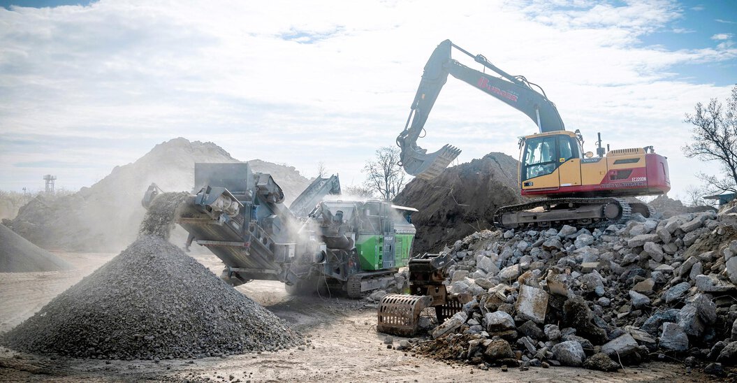 Bauschutt zu neuen Baumaterialien recycelt