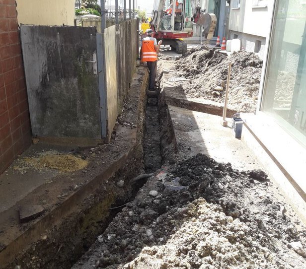 - 900 m lange Grabungen (Asphalt und Wiese)