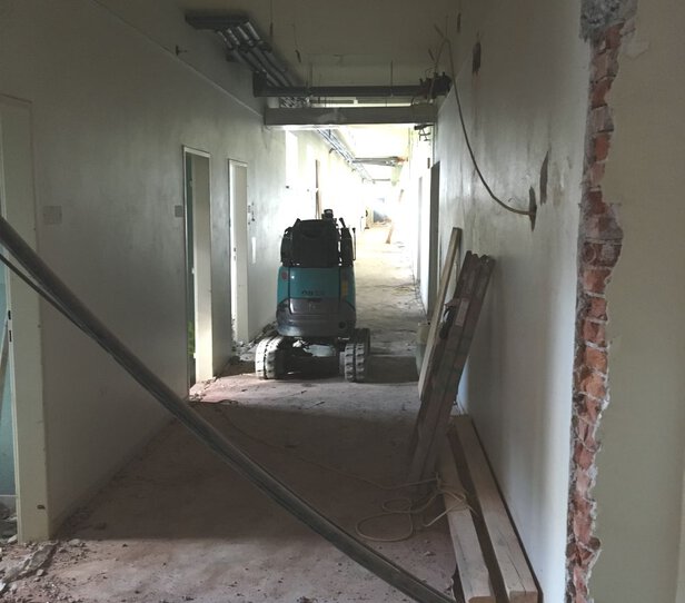 - Zuerst vollständige Entkernung des Gebäudes (Gesamtfläche: 5.200 m²)