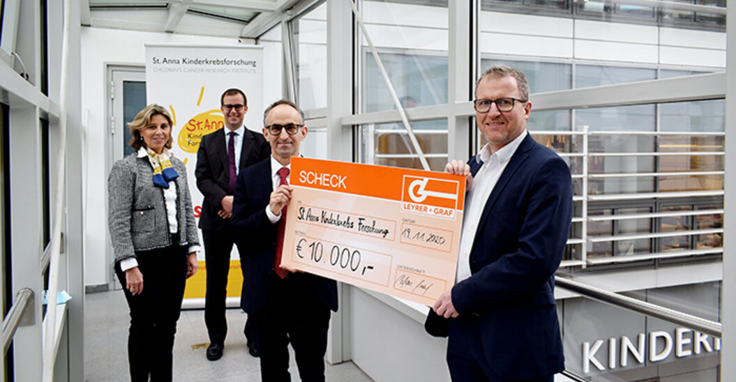Gmünd, am 14.12.2020. Die Unternehmensgruppe Leyrer + Graf zählt schon seit einigen Jahren zu den Unterstützern der St. Anna Kinderkrebsforschung und spendet jährlich € 10.000,- zur Verbesserung der Behandlungsmöglichkeiten im Kampf gegen den Krebs.